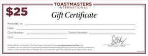 Effective as of August 27, 2020 Toastmasters International has terminated the use of THIRD-PARTY Visa Gift cards. The District has to adhere to the new policy and can only gift TI Gift Certificates instead of Visa Gift Cards for incentives award.