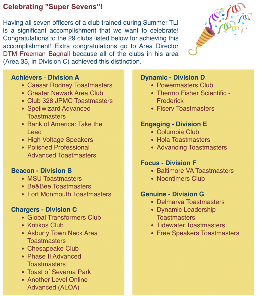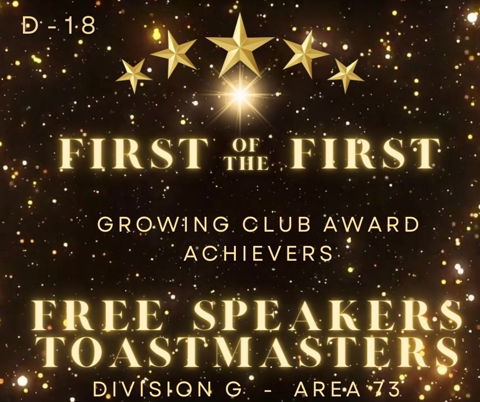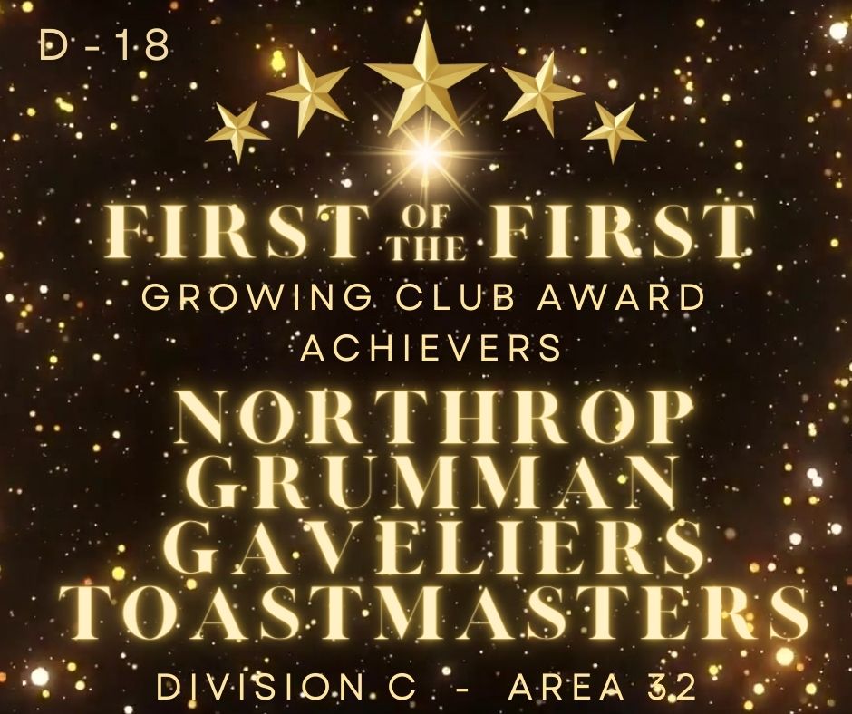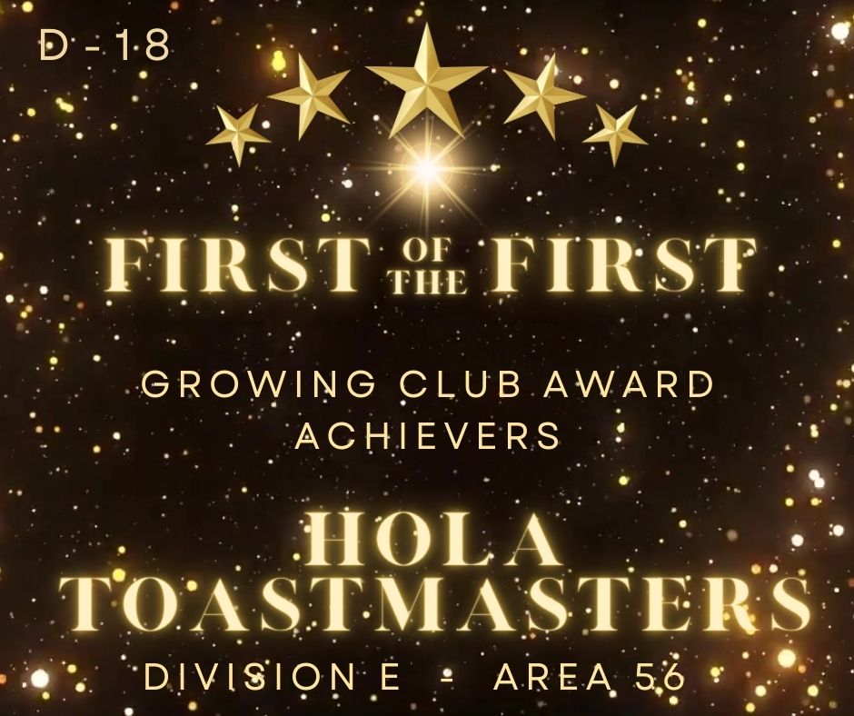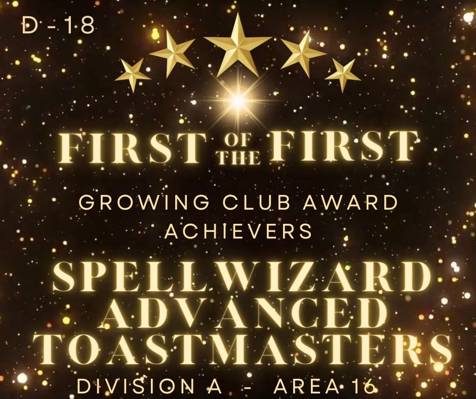 As a result, your continued winning efforts will bring even more success to your club and its members by the end of this Toastmasters year.